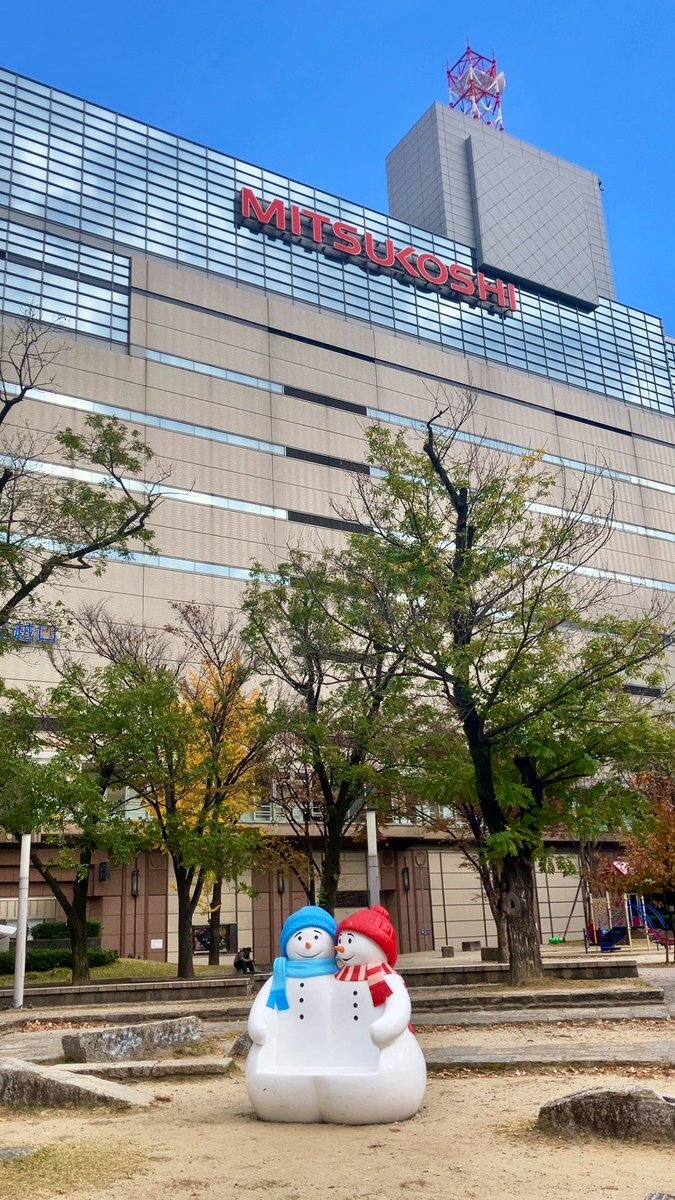 🚉🚞🚞🚞=3 🚶てくてく…🚉 久々に #西鉄福岡駅 #警固公園 に雪だるまさんが⛄️ クリスマスデコレーションは これからみたいやね よか天気やけど 体感温度は4℃ まあ冷えとる まずは #ploomshop で 月一のカートリッジポイント交換と 無料コーヒー頂いて 温まろ ☕️🚬y😊 #イマソラ #PearOption🍐