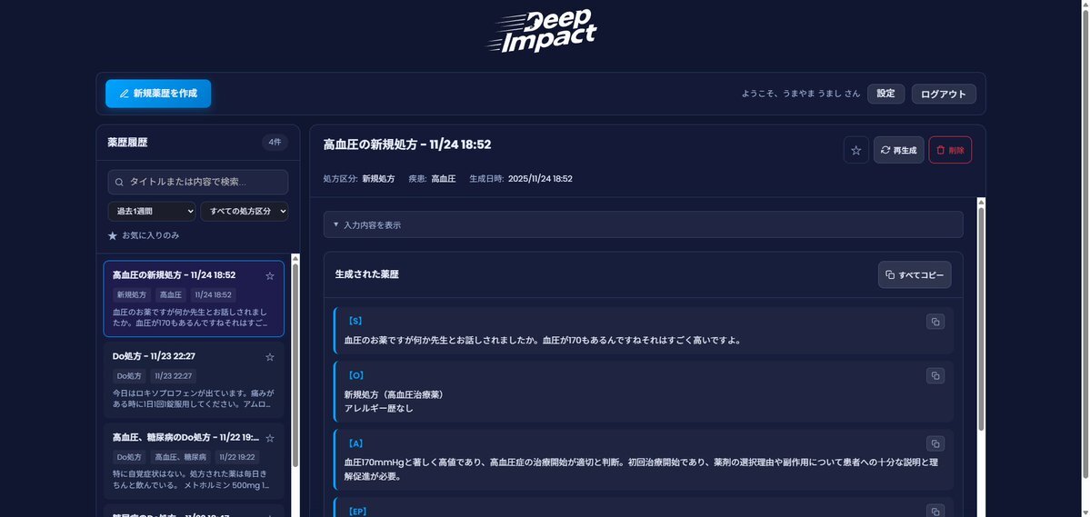 薬歴AIディープインパクト 生成履歴ページで検索とか編集ができるようになりました。 #deepimpact #薬歴AIディープインパクト #ディープインパクト