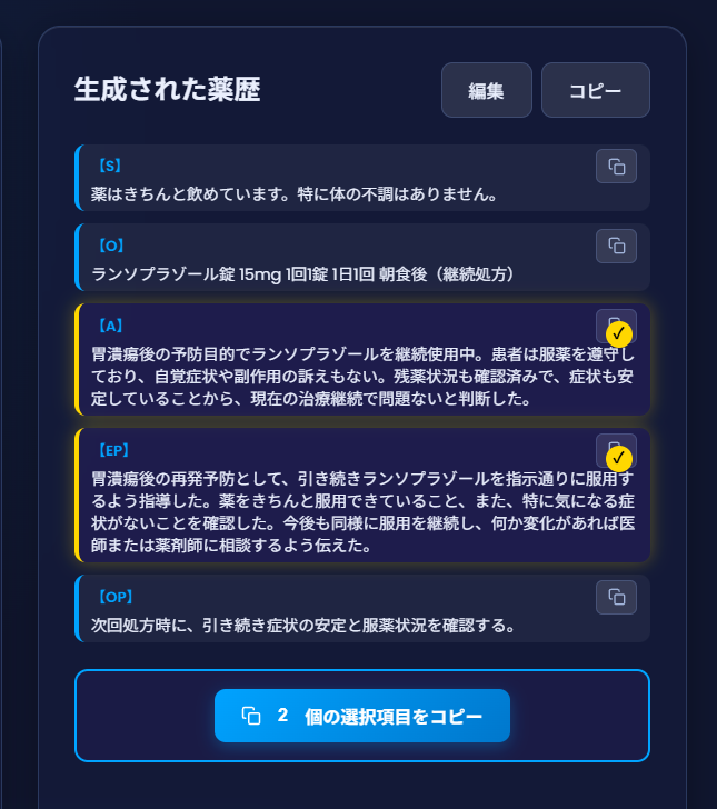 薬歴ディープインパクトプチアップデート セクションコピーに対応しました。 複数項目もクリックで選択して一括コピーできます。 #deepimpact pic.x.com/VSd43mFR4o