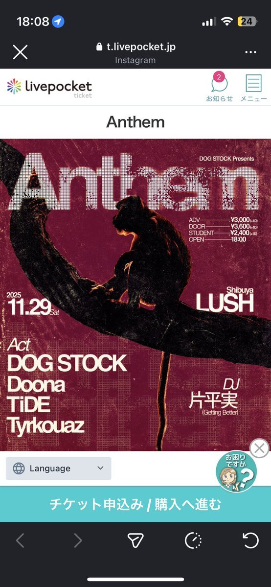DOGSTOCK企画のAnthems渋谷LUSH行ってきました。対バンがDoona、TiDE、Tyrkouaz。しばらくパンクラウドの現場続きでたまには気分転換に心身共に安らぎ求めにきました。尚且つDJが片平さんというブッキング含め素晴らしい企画でした!また伺います! #DOGSTOCK #Doona #TiDE #TiDE_胎動 #Tyrkouaz pic.x.com/o1TyJLPXeW