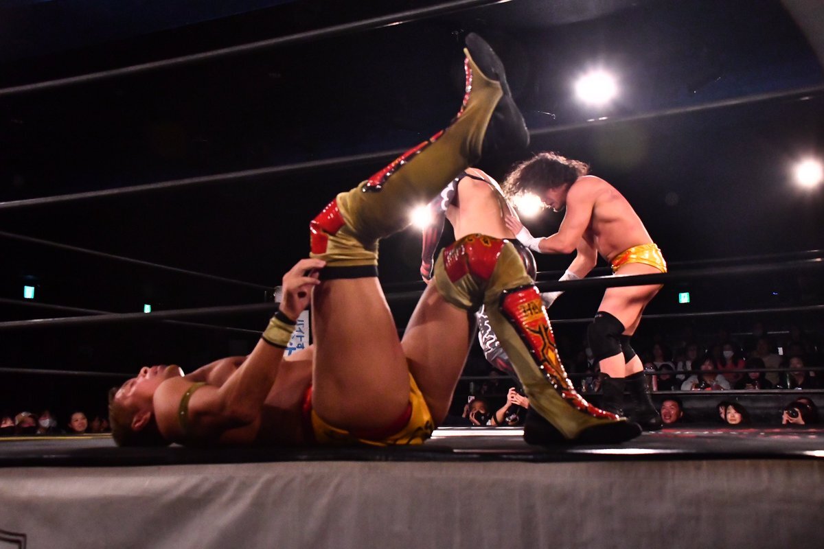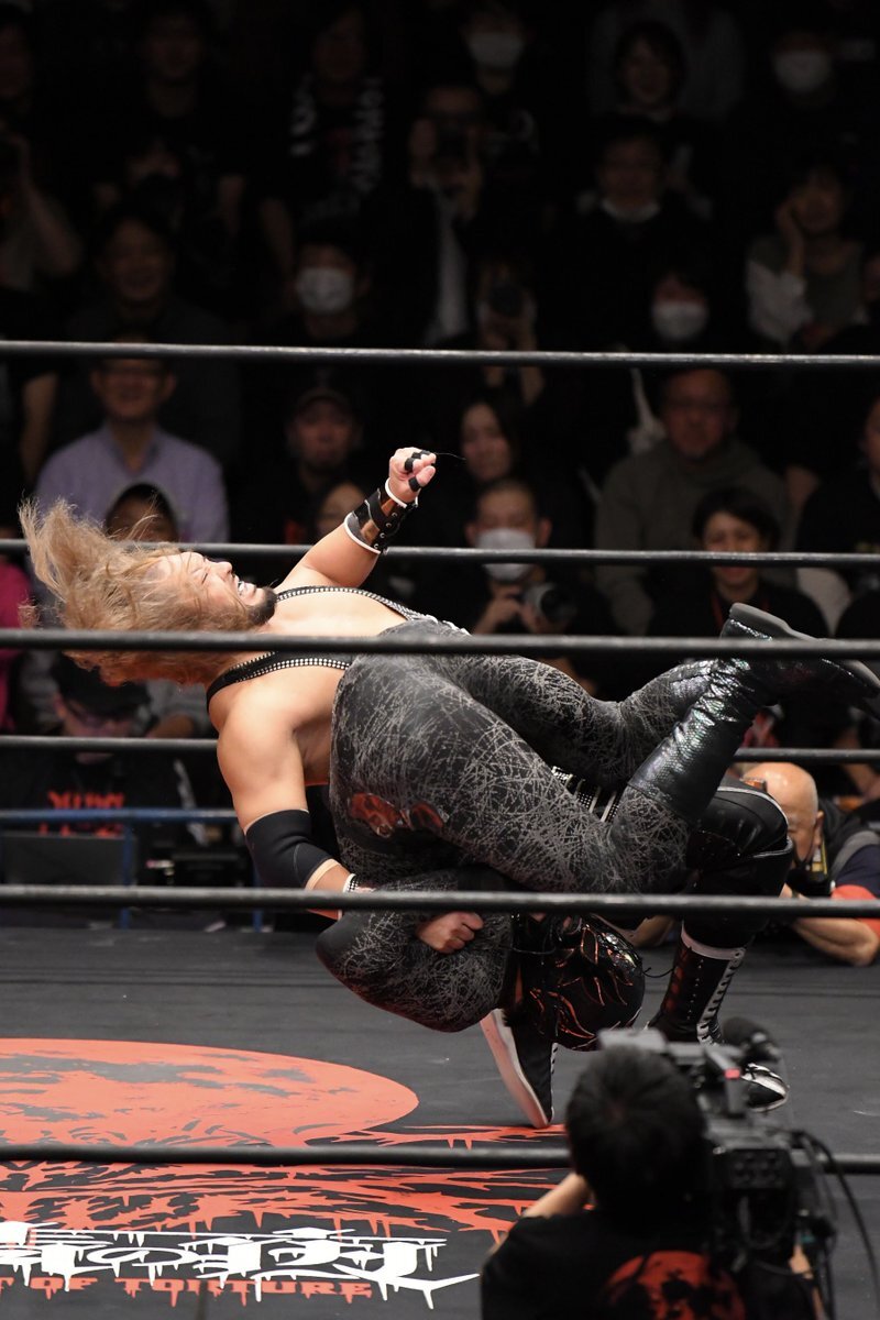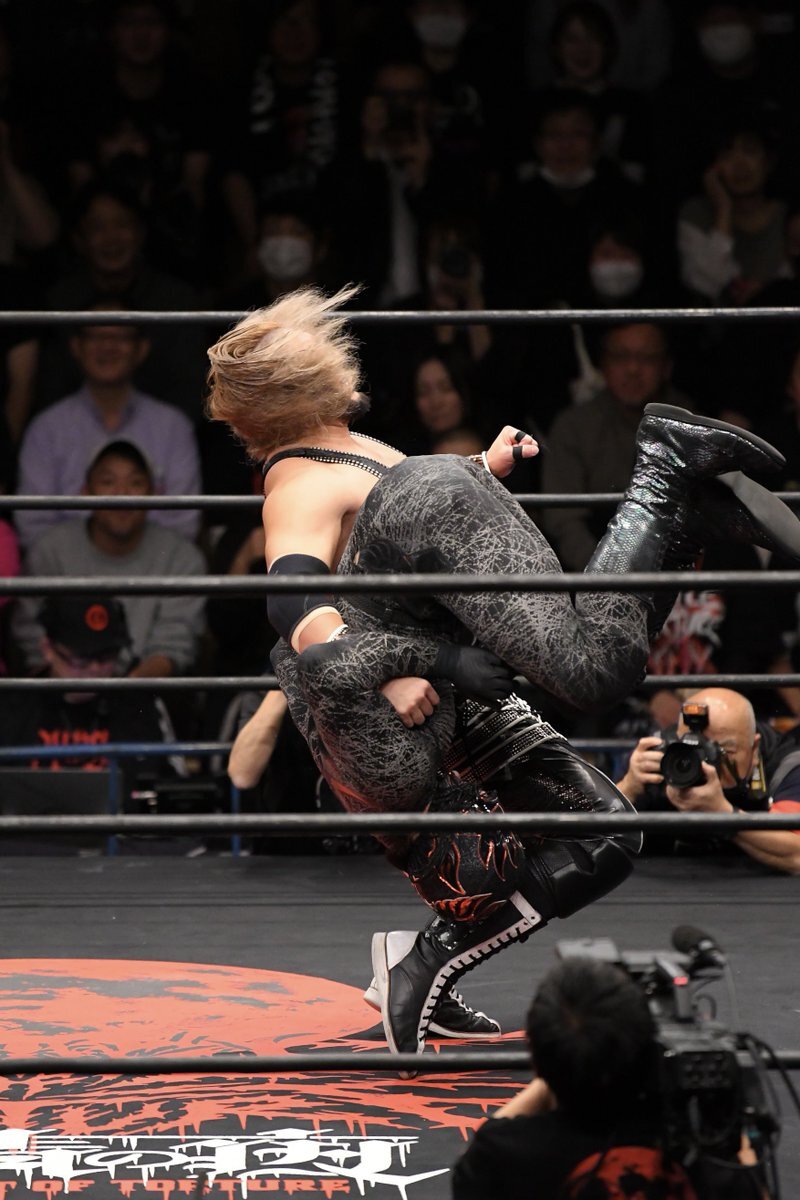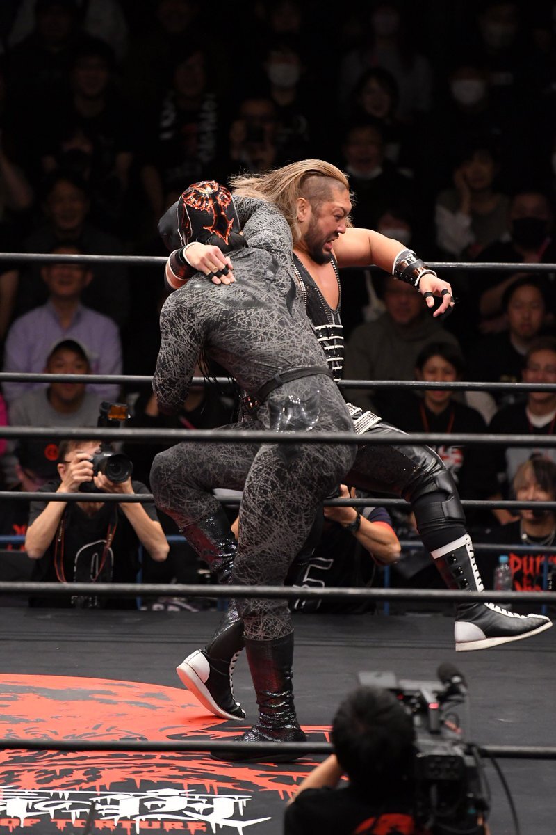 2025.11.19 #粛清の夜 後楽園ホール 第1試合 EVIL vs シュン・スカイウォーカー シュン選手が逆にEVIL選手にEVILを! (形としては上野選手のWRに似た形でした) #njpw #dragongate #SHUNSKYWALKER pic.x.com/YuXcgSLMOC