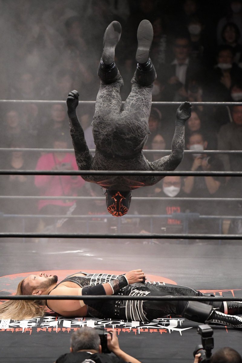 2025.11.19 #粛清の夜 後楽園ホール 第1試合 EVIL vs シュン・スカイウォーカー 白煙が立ちこめる中で、シュン選手がEVIL選手にムーンサルトダブルニー!あわや3カウントかと思った瞬間でした… #njpw #dragongate #SHUNSKYWALKER pic.x.com/nUjTi82VBO