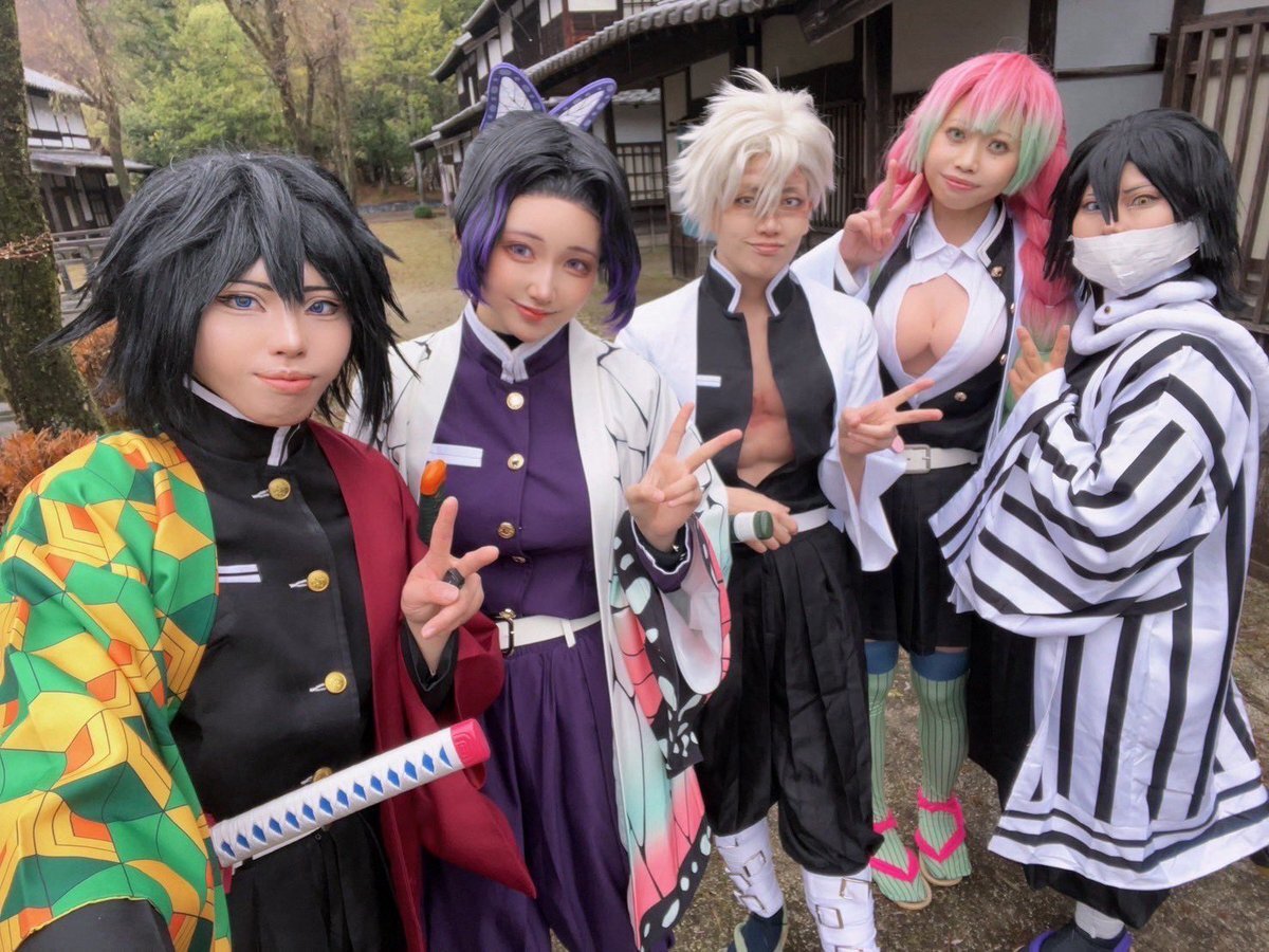 おそほ!念願の日光江戸村で柱併せしてきたよ〰️😘❣️めっちゃロケ良すぎて時間秒だった😭💕足りない‼️‼️‼️次は晴れでリベンジしたいわっ🫶 . 🦋 @ayame___777 🍃 @cos_sfill1718 🍡 @tshphp 🐍 @mameta04 #こす旅 #EDOCOS #edocos pic.x.com/wTTheMuHPO