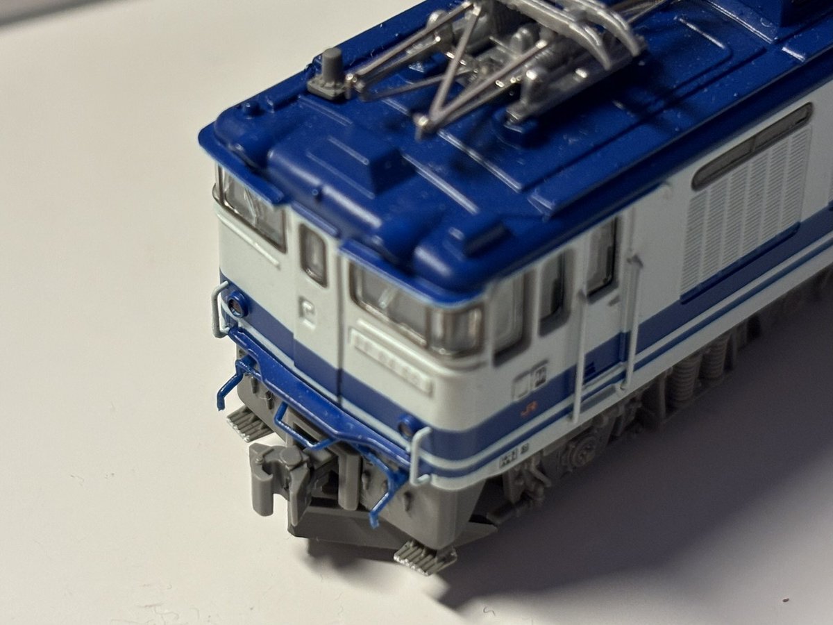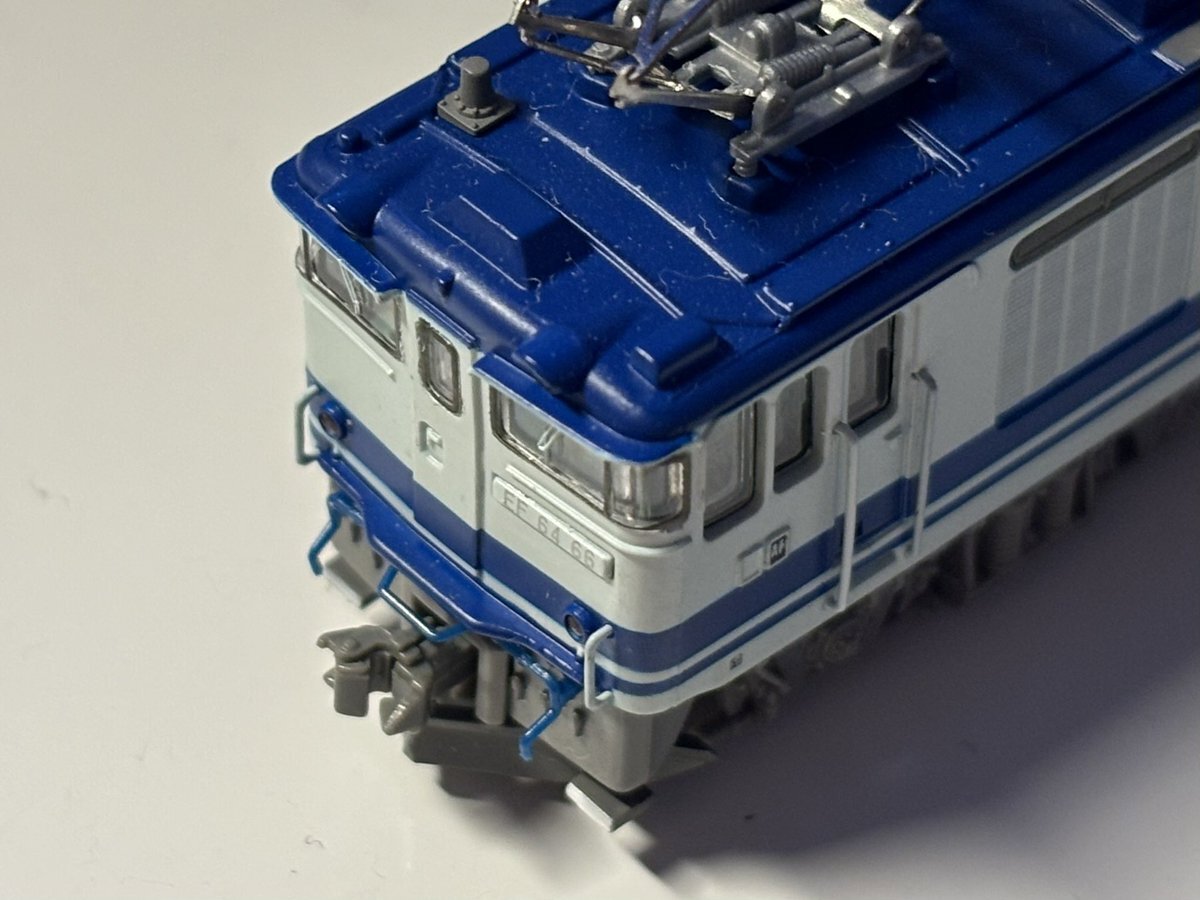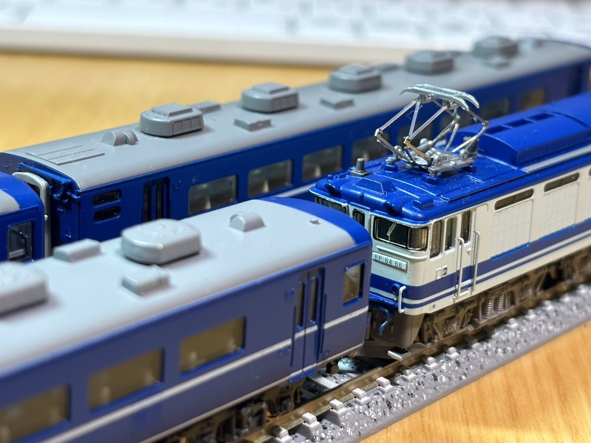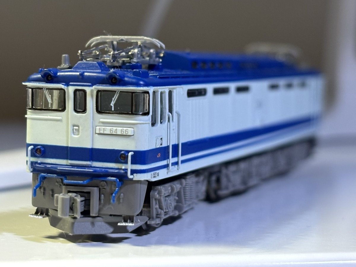 静シス EF64-66 入線 ずっと欲しかったユーロ専用機塗装のef64。 マイクロの機関車の欠点のカプラーは1エンド側をtn、2エンド側をナックルカプラーに変更。印刷は抜群に良い製品で大満足。これからは、同時期に入線した14系座席車と一緒に加工を進めていきたいです! #ef64 #14系 #マイクロエース pic.x.com/WrUlzoxkDT