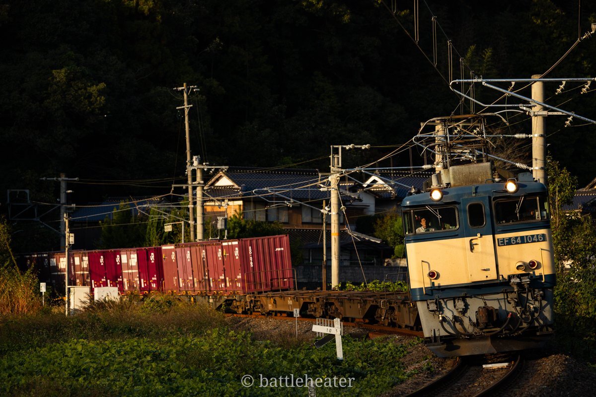 山影に飲まれる1分前 踏切が鳴ってから列車が見えるまでが永遠のように感じられる…はよ来い!はよ来んかい!! 考えていた切り位置は闇に没したが、ギリギリ日が当たる位置で収められた #EF64 pic.x.com/GRCr8GUcN3