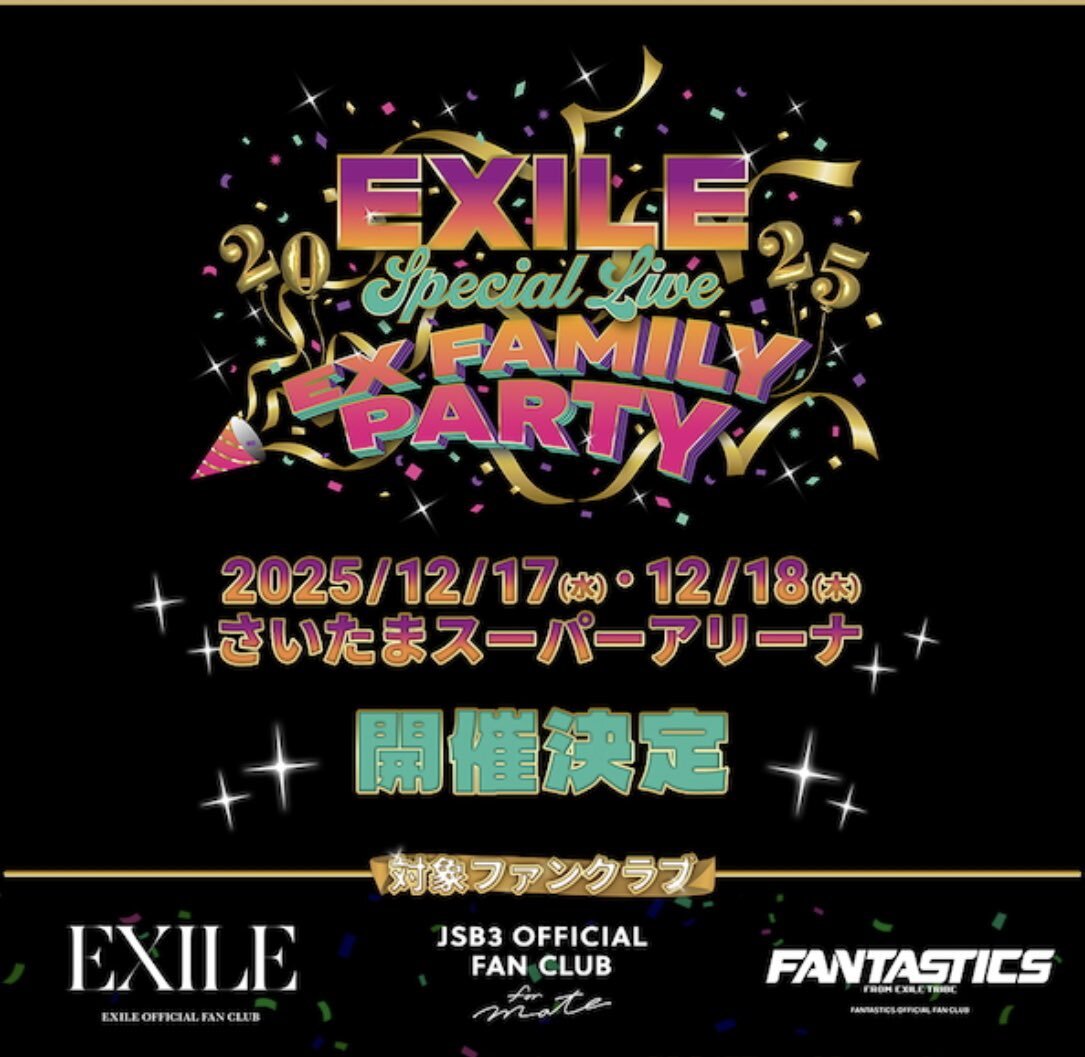 「FANCLUB presents EXILE SPECIAL LIVE "EX FAMILY PARTY"」 #EXILE #エグザイル #EXFAMILYPARTY #EX_FAMILY_PARTY 12月17、18日@さいたまスーパーアリーナ セットリスト rrr3k.com/entry/2025/11/…