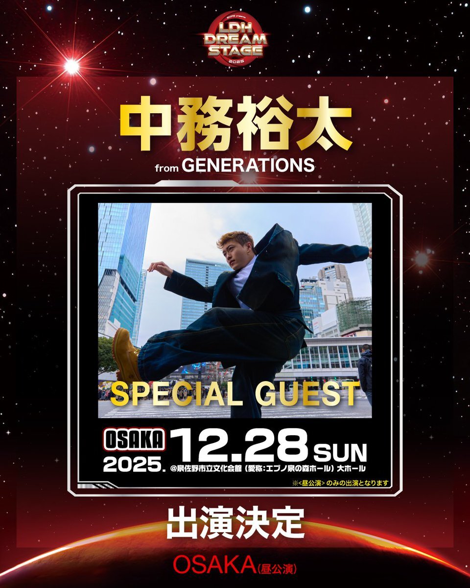 🔥出演決定🔥 12/28に開催する「#EXPG Presents LDH DREAM STAGE」OSAKA公演の昼公演に #中務裕太 が出演✨ FUNABASHI公演に続き、自身がディレクションを務める「I AM ME. -WEST-」とのパフォーマンスを披露!! ぜひ会場でご覧ください!!💪🔥 🔽詳細 e-ticketbook.com/expg-dreamstag… #ドリステ #発表会 pic.x.com/S6zmuDwG1L
