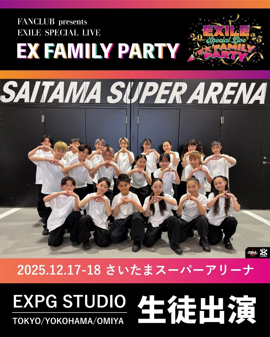 先日さいたまスーパーアリーナにて開催された、FANCLUB presents #EXILE SPECIAL LIVE "EX FAMILY PARTY" 埼玉公演に、#EXPG 生徒40名の生徒がサポートダンサーとして参加!! 貴重な経験をありがとうございました✨ トピックスはこちら👇 expg.jp/info/detail.ph… @exilelive_acc #EX_FAMILY_PARTY pic.x.com/DI91cUblmL
