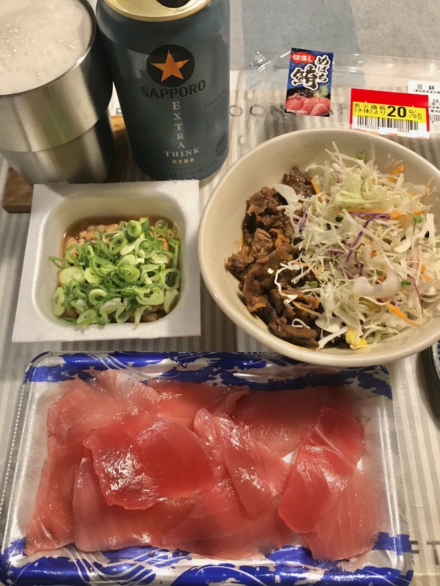 皆さまお疲れ様です♪ 今日はちょっと寒かったですね ストックのハッシュドビーフ🥩 帰りがけにベルクで安く仕入れたメバチマグロ🐟🉐 限定🍺で乾杯です🍻 #晩酌部 #宅呑み #おうちごはん #SAPPORO #EXTRA THINK pic.x.com/KQsKouPwXB