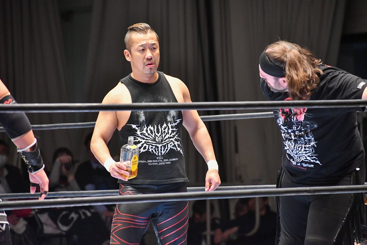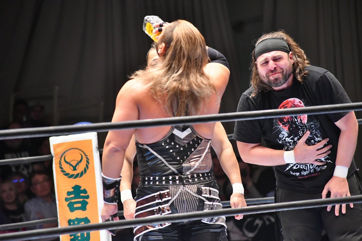 お前らちゃんとやれよ〜のノブさん お前ら酒でも飲んで仲直りしろよ〜のノブさん いい味出してる 2025-11-20 #金丸義信 #チェーズ・オーエンズ #EVIL #njpw pic.x.com/flBQU61c1z