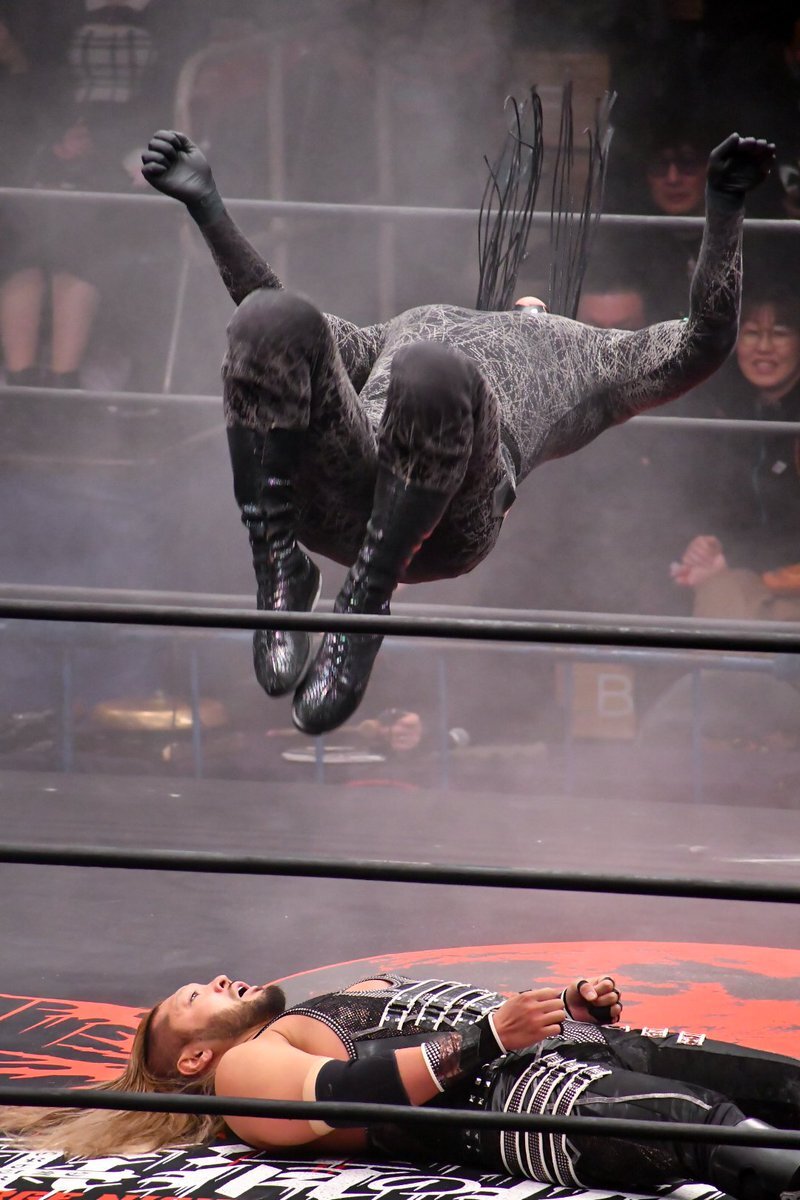 誤爆の煙の中から現れて鮮やかなその場飛びムーンサルトダブルニーは格好良すぎる 2025-11-19 #粛清の夜 #シュン・スカイウォーカー #𝐒𝐇𝐔𝐍𝐒𝐊𝐘𝐖𝐀𝐋𝐊𝐄𝐑 #DRAGONGATE #EVIL #njpw pic.x.com/4BXB9uHHlK