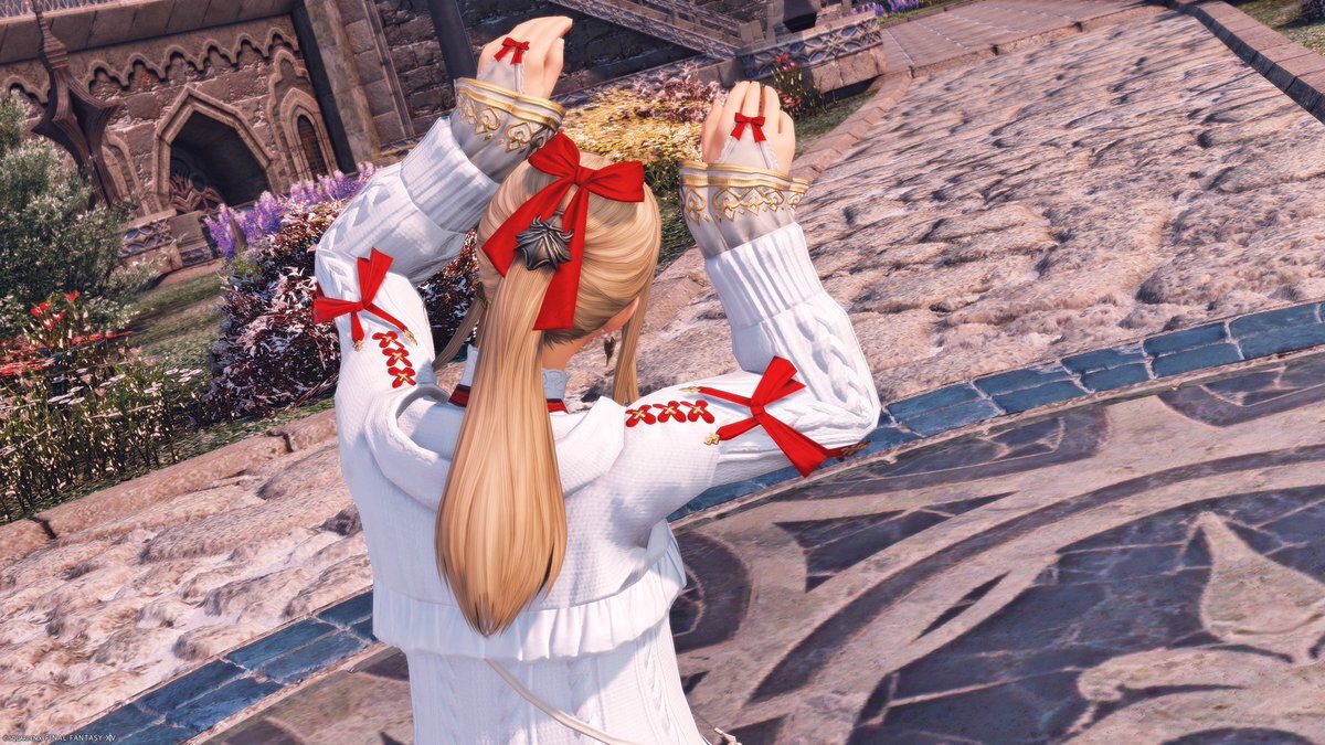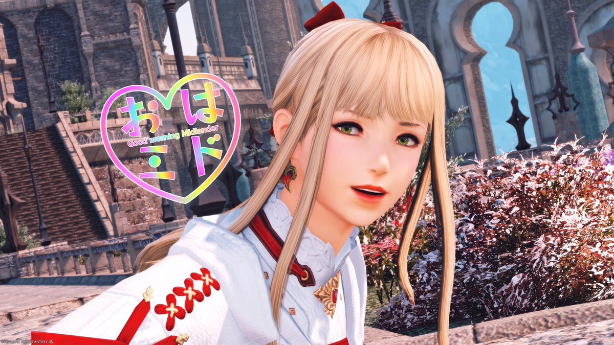 ウワサじゃない方のリボンの乙女❤️ サベネアンリボンが似合うオメガFの髪型 ならばこちらも…レッドリボンでっす🎀🤗 本日も良き一日を☕️🎶 みなさん おはミドございまっす(﹡´◡`﹡ ) #FF14 #本日のミドラン #FF14SS #おはミド pic.x.com/g2q2UPWu9h