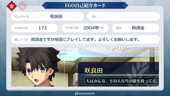#FGO好きな人と繋がりたい #FGO好きと繋がりたい #fgo自己紹介カード 永遠の初心者🔰 FGOメインに色々なゲームのお話できる方とつながりたいですᐡ。› ·̫ ‹。ᐡ 全反応巡回して気になった方お迎えします👾💨 pic.x.com/9MOzzIJoHC