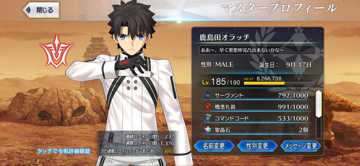 終章に向けて重い腰を上げた出戻り勢🔥 ゆるーく会話できるFGO勢の方と繋がれたら嬉しいです✨ 276,890,983 #FGOフレンド募集 #FGO好きと繋がりたい #FGO好きな人と繋がりたい #いいねしたFGO勢全員フォローする pic.x.com/GjdfoU2B9B
