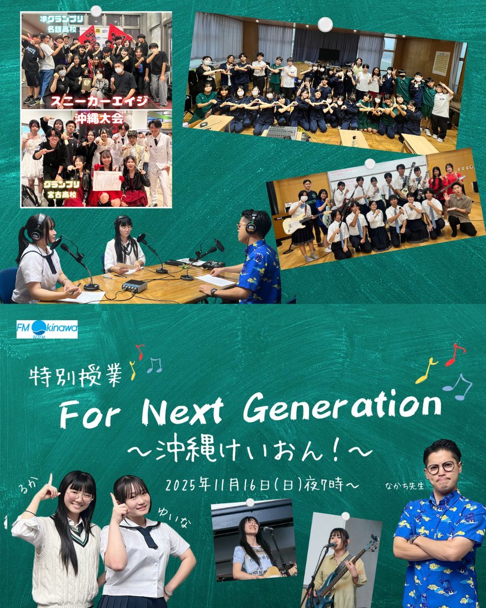 🎸本日オンエア🎸 特別授業For Next Generation ~沖縄けいおん!~ 学生軽音楽の今にクローズアップ! 盛り上がりを支える人たち、 そして沖縄の高校生の挑戦に注目です! #FM沖縄 #沖縄けいおん radiko.jp/share/?t=20251…