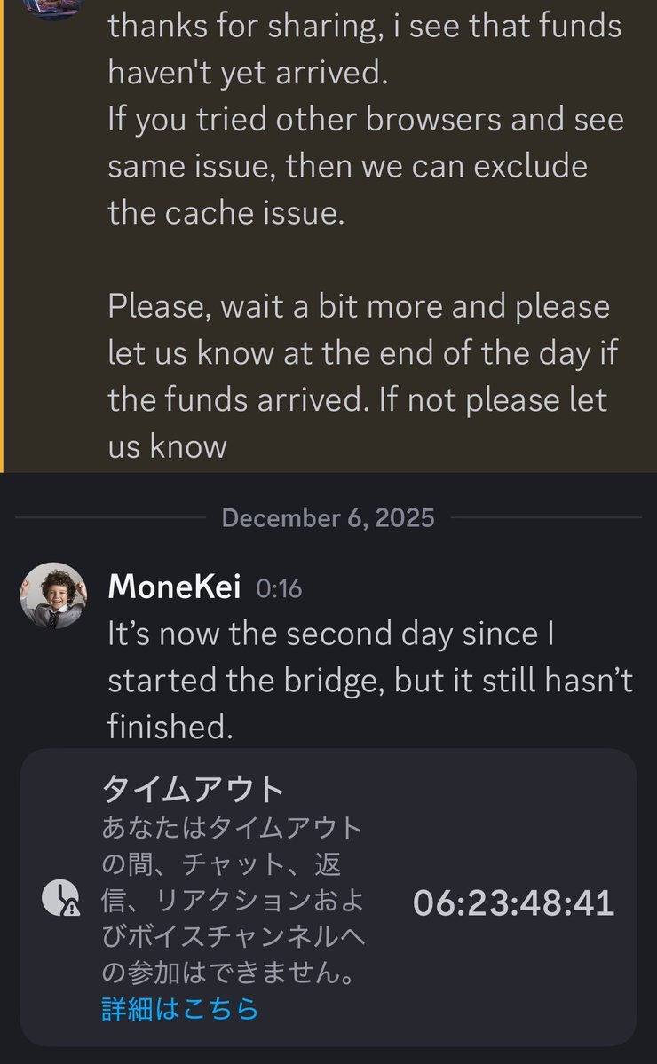 2日経っても返ってこないんで運営に尋ねてたら一週間キックされたんだけど…… Fuelは人の金をラグるつもりなのか……? もうこんなんばっかやな #fuel pic.x.com/1Z4hIBKJLo x.com/moneymadkei/st…