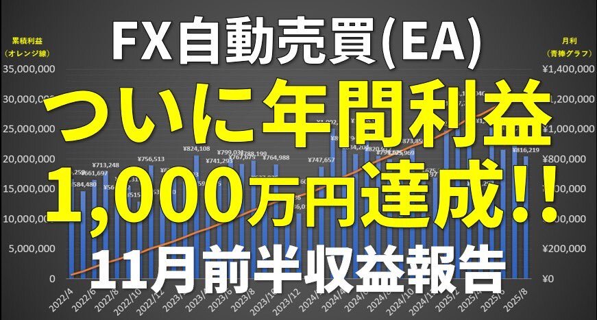 【ついに年間利益1,000万円達成!!】FX 無料EA 自動売買 3年以上ロスカット無し 11月前半収益結果報告 初心者にお勧めEA #ゴールド... youtu.be/Crf3kUUJ6Bo?si… @YouTubeより #fx自動売買 #XM口座開設 #fx初心者 #fxトレーダー #fx初心者 #ナンピンマーチン #xm #XM口座作成 #海外FX #ゴールドEA pic.x.com/yMwyprODnV