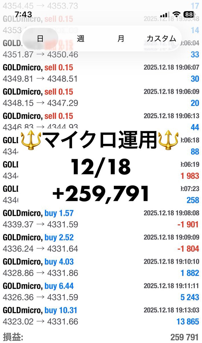 🔱エクストリームEA・グループ🔱 実績は嘘をつかない 自身の実績公開中 デモじゃない マイクロで運用 12/18実績 マイクロ運用でも爆益可能です‼️ 継続して勝つ方法を伝授します 行動しましょう😊 運用者さん実績も公開中 詳細はプロフを見て下さい😊 #Ad #FX自動売買 pic.x.com/hGVISlXZUu