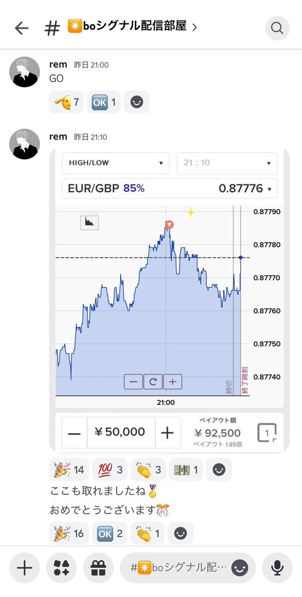 BOシグナル無料配信は ポストの後1本取れました⭕️ 今日は順張り部屋の方で 無料配信してそこで1本です! 勝率8割手法は最近レムが作った 手法Dもかなり強くて大人気ですね👏 やはり年内で新規募集は終了大… 本日は雇用統計にご注意を🫡 #副業 #投資信託 #バイナリーオプション #FX自動売買 pic.x.com/ENAnh4L4lq