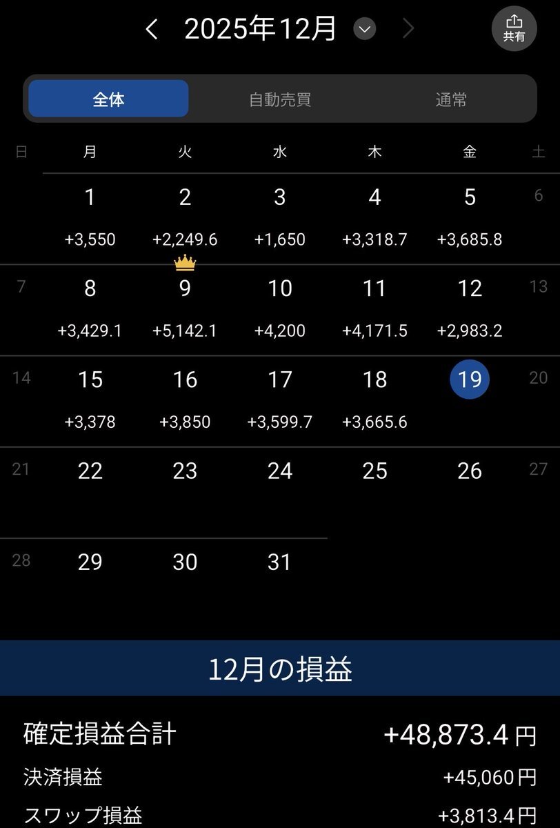 昨日は🇺🇸CPIの発表があった割には為替が動かず、確定利益を3,665円でした。😊 建玉と含み損が少し増えちゃったけど、いずれスワップで解消してくれるでしょう…🤔 年末年始にかけて市場参加者が減って 予期せぬ値動きがありそうだから、少し投資金額を抑えていこう❗️✊ #松井証券 #FX自動売買 pic.x.com/KF7MZgXBLs