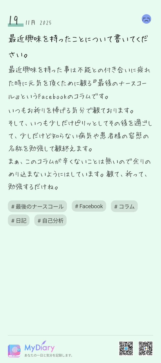 私の日記を観て秋の夜長の眠れない時のお供にしませんか? #最後のナースコール #Facebook #日記 #自己分析 #日課 play.google.com/store/apps/det… pic.x.com/v74bRWfeCZ
