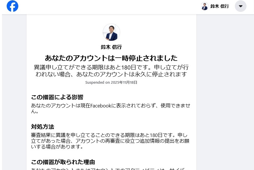 facebookのアカウントがなぜか強制的に一時停止されました。 メッセンジャーも含め、しばらく使えそうもありません。 もし、業務などで関係する方がいたら、関係者に展開しておいていただけると幸いです。 思い当たる点がないだけに、まじで困る。 #facebook #meta #メタ pic.x.com/LkzEfZsXqY