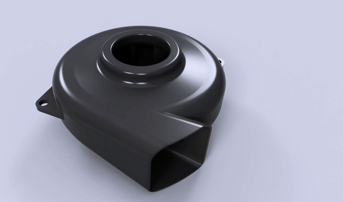 カバーまで出来た ボリュートのところやっぱりモデリング難しい・・ そして面倒な形状だとだいたいブーリアン失敗する でもこのファンはインテークの周囲に壁がちゃんとあってすごい #遠心ファン #Fusion360 #Autodesk #fusion #3Dモデリング pic.x.com/y8jlBLVIen