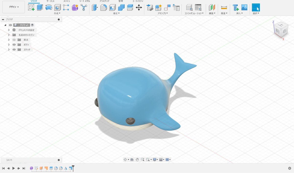 はじめての投稿です。Fusionでクジラを作ってみました🐋 マスコットみたいで気に入ってます🌱 #Fusion360 #ものづくり勉強中 pic.x.com/SxkD0qIjNk