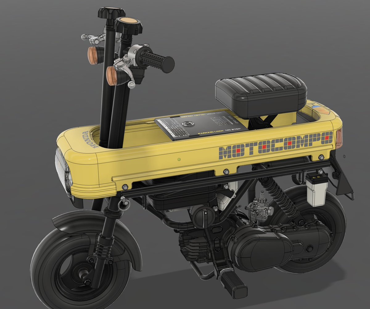 休日の今日も朝からFusion360 ん〜、モデリングも悩みながら進めてるけど、デカールや色分けについても分からないとこでてくるなぁ。 #バイク #ホンダ #モトコンポ #鳥山明 #mac #fusion360 #3dモデリング #老眼殺し pic.x.com/euMt4vBGgN