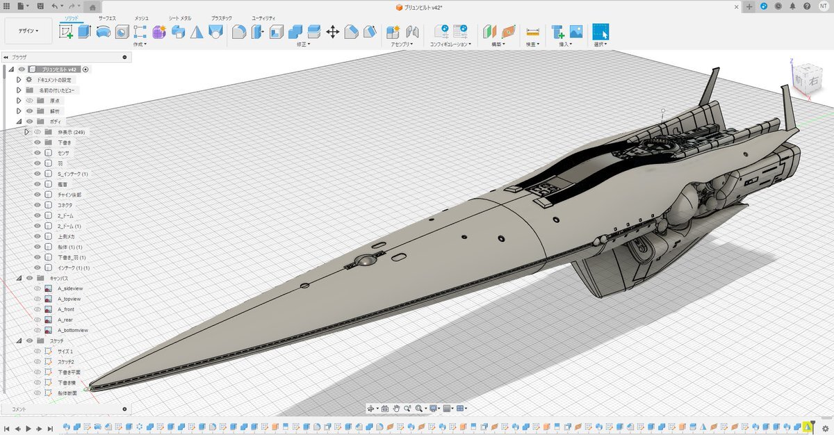 遂に3Dモデリングが完了したぞ。 いや~カッコ良いわ。 自画自賛しちゃうね^^ #Fusion360 #アプサラスII pic.x.com/GxDMHikszS