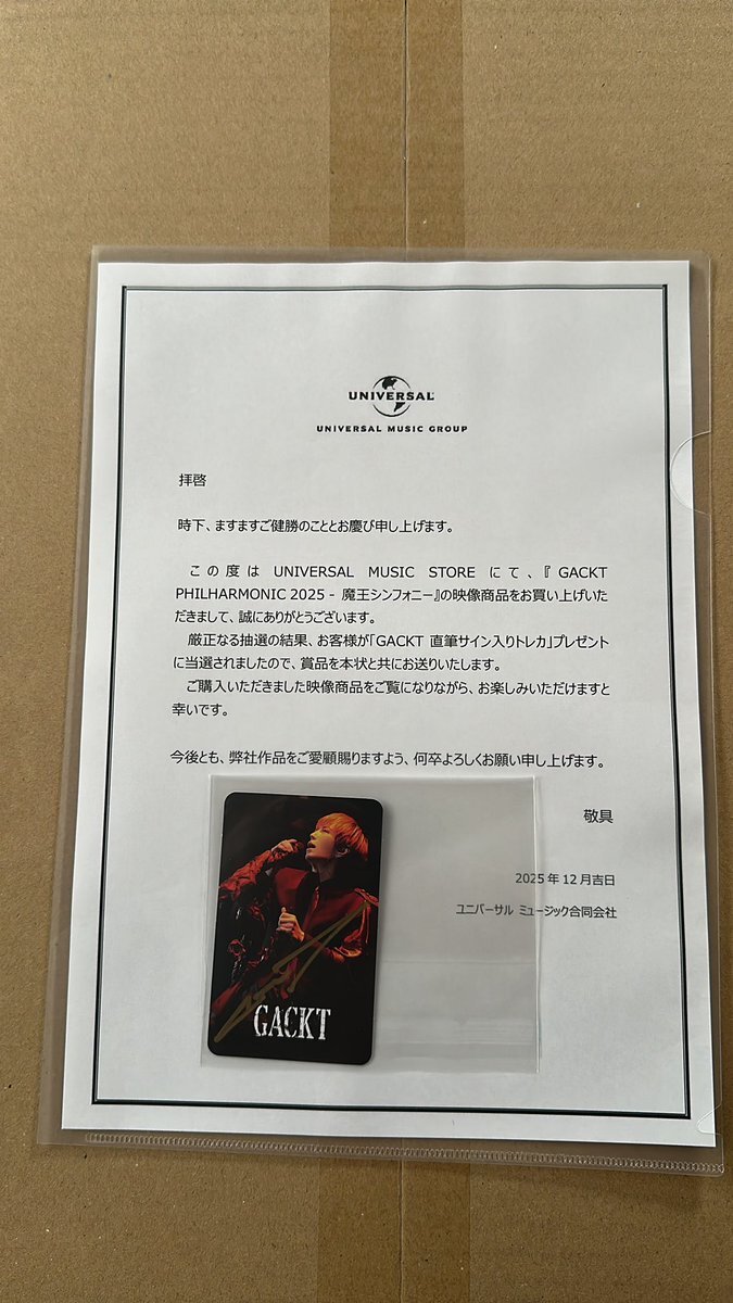 「#GACKT PHILHARMONIC 2025 魔王シンフォニー THE REVIVAL」開催迫る! 会場限定特典発表! UNIVERSAL MUSIC STORE限定で展開されていた全10種のトレーディングカードですが、この度会場にて映像作品をご購入いただいたお客様に特典として【幻の11種目のトレカ】を進呈いたします! pic.x.com/41ZaYpzPuB