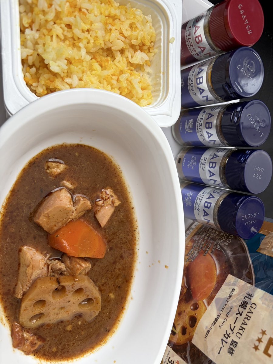 #GARAKU にはうるさい道越デモがローソンの #GARAKU監修札幌スープカレー🍛を食べてわかったのは、 甘いのにスパイスをしっかり感じれて間違いなくうまい!...が少し物足りない... 単品でクミン、コリアンダーを入れても少ししか変わらない オールスパイスは少し味が尖り過ぎている、、、 pic.x.com/xmKeOGrpsU