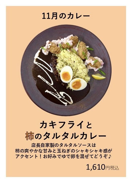 11月のカレー カキフライと柿のタルタルカレー ですが、ご好評につき完売いたしました! ありがとうございます🙇🏻♀️ 現在、12月のカレーも試作を行なっていますので、来月の月替わりカレーも是非お楽しみに🥰✨ #ルーカレーガラク #豊平区美園 #GARAKU pic.x.com/cuMEMNRWy3