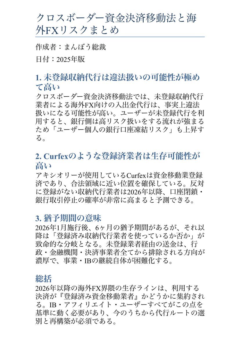 金融庁に指摘されたんだろうね。 GEMFOREXの“功績”で収納代行の規制が一気に厳しくなったのは確か。 毎日数億円の入出金があったのに、異常だと気づいていても手数料欲しさで何もしなかった銀行。 銀行が善管注意義務を怠ったなら、銀行を追求するのもありかも... #GEMFOREX #GalaxyDAO #収納代行 x.com/manbou_sousai/…