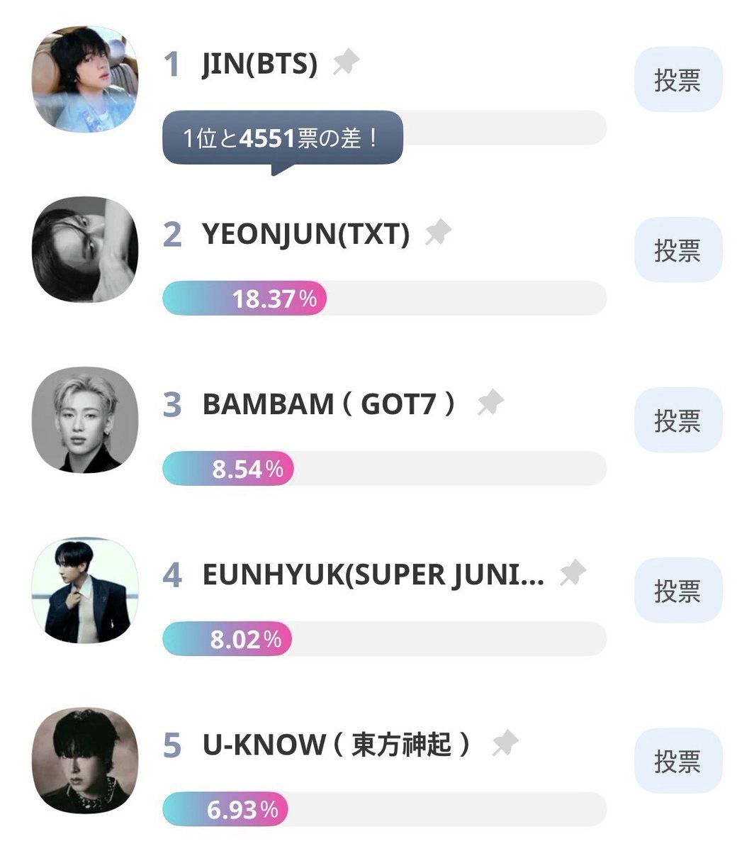 ✨「Kstyle Awards 2025」ランキング2025🪐 🎤BEST SOLO🎤 速報:Current TOP5 1⃣ #JIN (#BTS) 2⃣ #YEONJUN (#TXT) 3⃣ #BAMBAM (#GOT7) 4⃣ #EUNHYUK (#SUPERJUNIOR) 5⃣ #UKNOW (#東方神起) 期間▶️ 12/10(水)~12/24(水) 投票▶️tinyurl.com/ytcvthjc #KstyleAWARDS2025 #KstyleAwards pic.x.com/JBA3XeCFNb