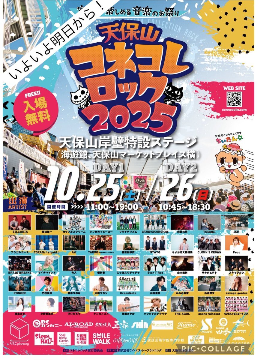 🎡コネコレロック2025🐈‍⬛ 2025.10.25-26 2days.開催!! 天保山岸壁特設ステージ connecolle.com 10/26出演!! 🎥GRAND COLOR STONE grandcolorstone.com 🐈‍⬛🐾コネコレ支援グッズ🐾🐈‍⬛ ①stage前方エリアで観覧できる“コネエリア”優先エリアパスを販売中//