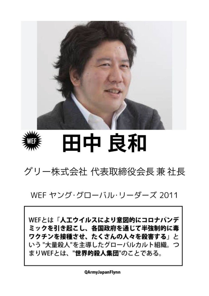 ⚠️危険⚠️ 拡散希望します❗️ 67. 田中良和 (グリー HD 代表取締役 会長) ヤンググローバルリーダーズ 2011 #WEF #世界経済フォーラム #ダボス会議 #ヤンググローバルリーダー #人564 #薩人鬼 #全匹9除 #納税拒否 #グリー #GREE #ソニーネットワークコミュニケーションズ #楽天 #日本大学 #田中良和 pic.x.com/ArMU6AX7Vv