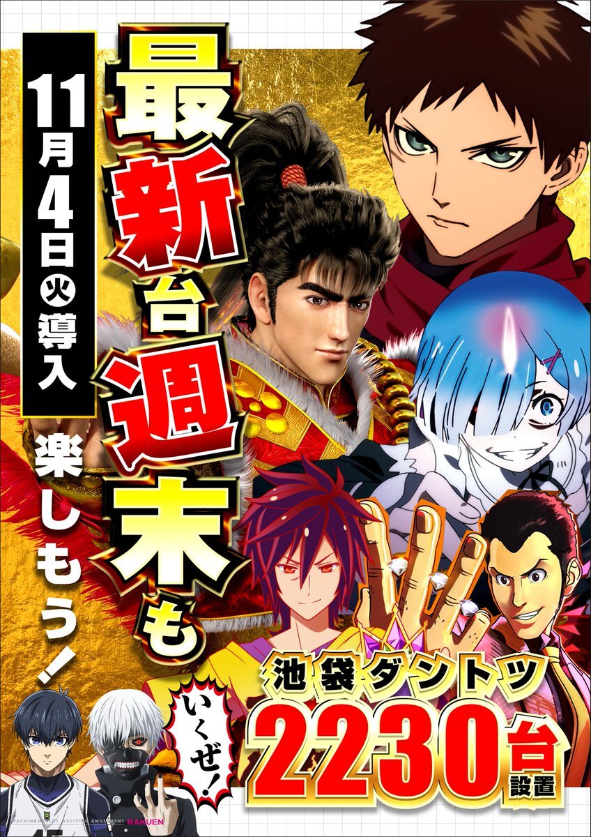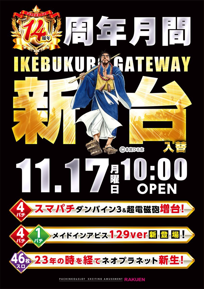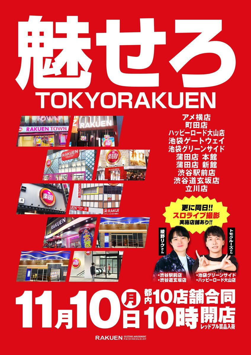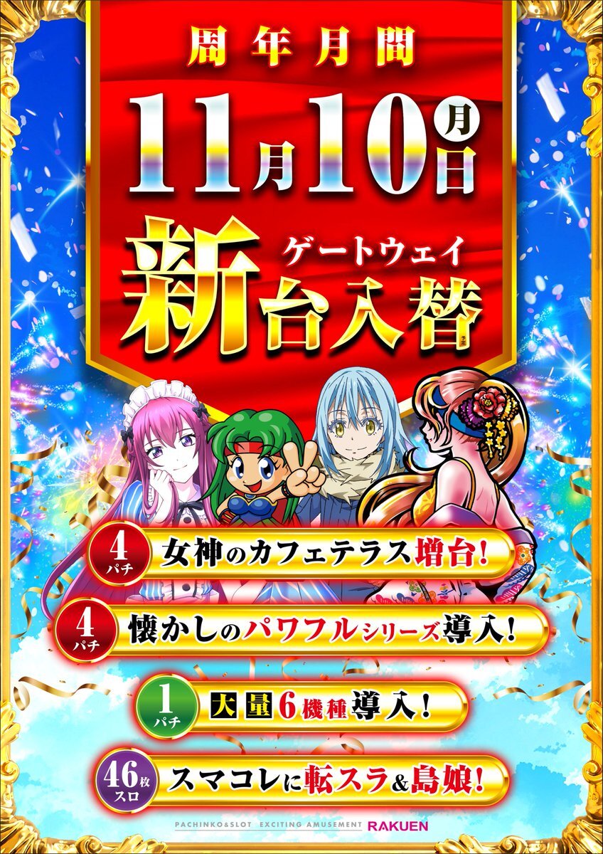 楽園池袋店ゲートウェイです🦉 明日11月10日(月)新台入替  さらに・・・ 都内楽園10店舗合同10時開店 🔥ご来店お待ちしてます🔥 #GW #ゲートウェイ #楽園 pic.x.com/MlBfo4CXS2