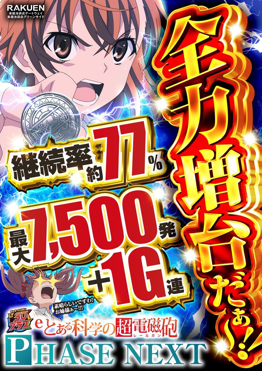 楽園池袋店ゲートウェイです🦉 ゲートウェイでは今週人気機種を増台‼ とある科学の超電磁砲 PHASE NEXT 聖戦士ダンバイン3 ZEROSONIC ぜひこの機会にお試しください🎵 #GW #ゲートウェイ #楽園 pic.x.com/LpQP6SVRn3