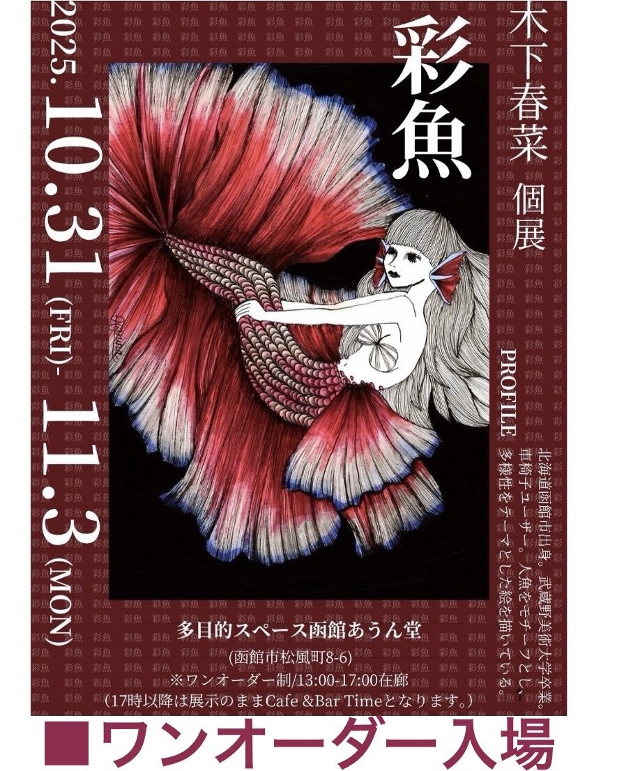 ’25年11月3日 木下 春菜個展「彩 魚」 本日最終日!17:00迄ですよ #函館 #北海道 #あうん堂 #art #gallery pic.x.com/lGOeLMv61W