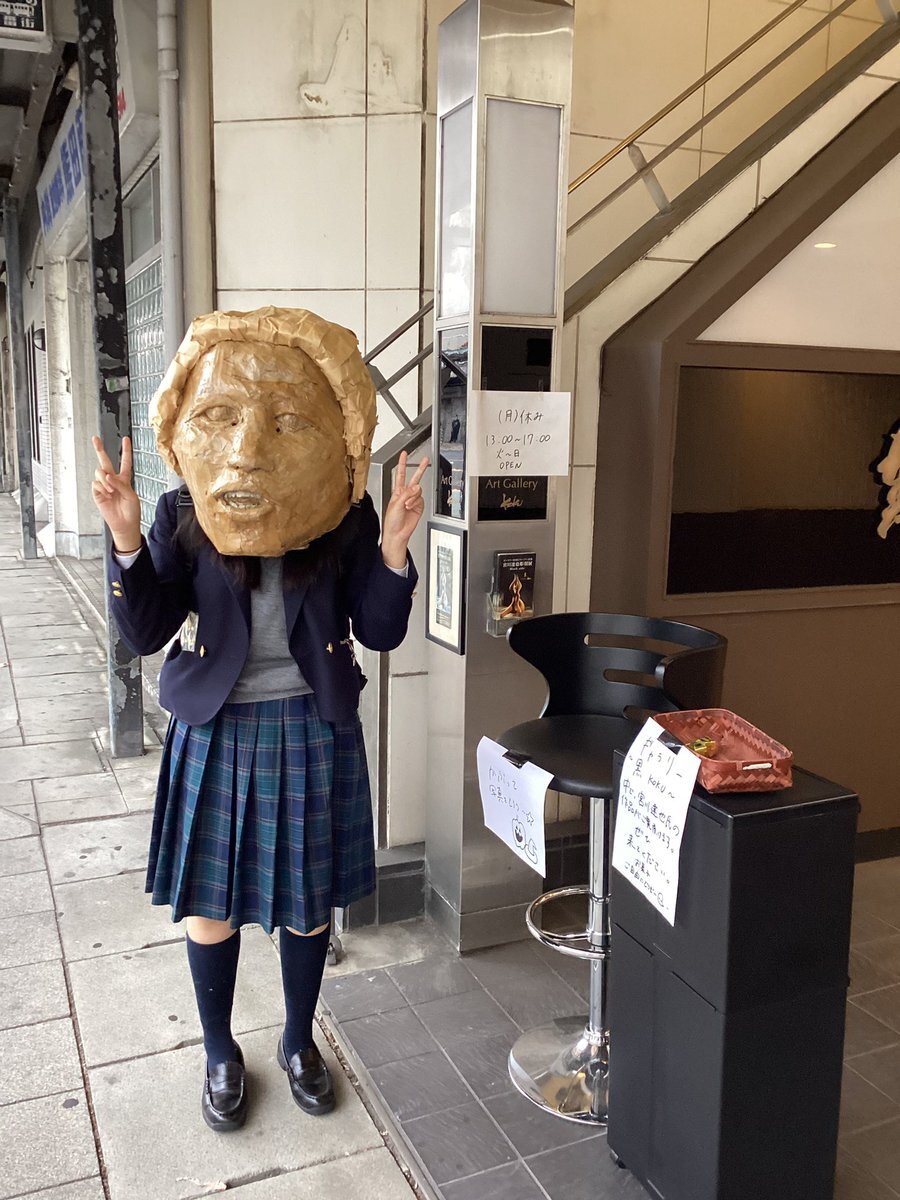 学生さんがギャラリーに来てくださいました😊 宮川達也先生のダンボールアートの被り物も体験✨ 楽しんでいただけて嬉しいです! ありがとうございます🎶 #ハロウィン #Halloween #お菓子 #被り物 #ダンボールアート #artgallery #gifu #彫刻 #宮川達也 #入場無料 #art #gallery pic.x.com/hvqYgTYQNx