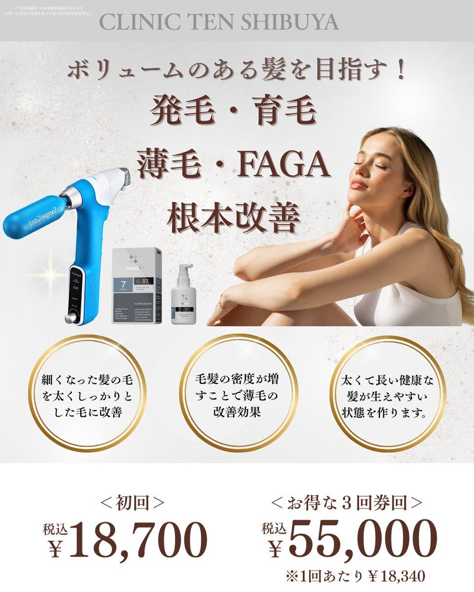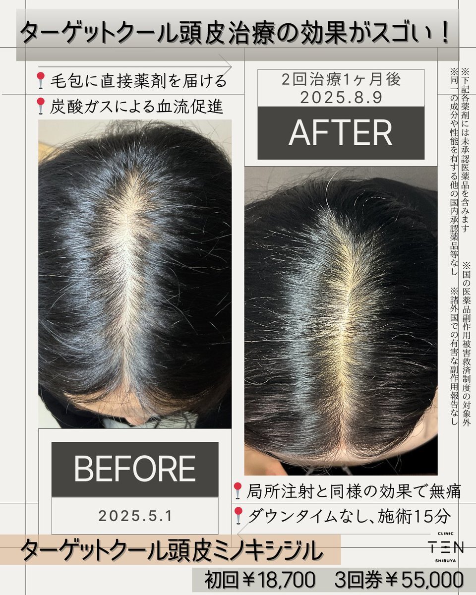 ターゲットクールで頭皮の血流改善+ミノキシジルの注入効果で、より強力な発毛効果を!💪 痛みゼロ、15分で終わります! 1回18,700円、お得な3回券55,000円もご用意しています🤭 男性も安心の全室個室で対応いたします🏘️ ご予約はこちら▷clinicten.jp #AGA #増毛 #発毛 #ハゲ #HARG pic.x.com/7p0Rsa76ob
