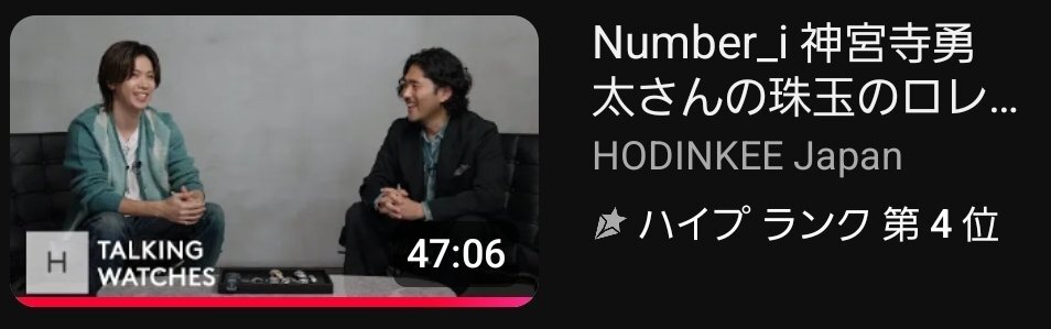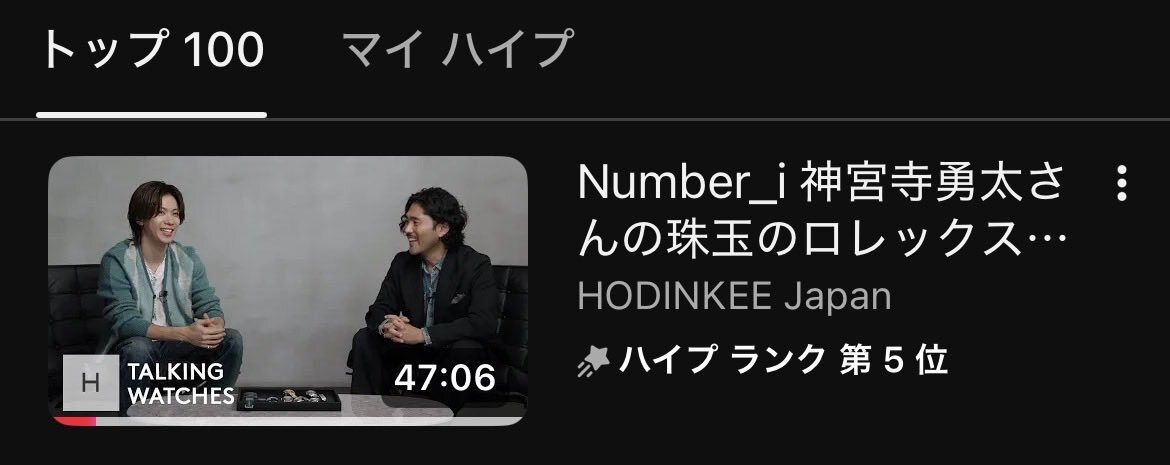 #YouTube で #HODINKEEJapan 様の #Number_i #神宮寺勇太 君出演回のハイプ ランクがなんと第4位!!! おめでとうございます🩵 神くんの大好きなものをファンが見れる環境になったことに感謝していますし、神くんにオファーしてくださった #HODINKEE 様にも改めて感謝しています! #Number_i_LYs pic.x.com/VnejozPYLy