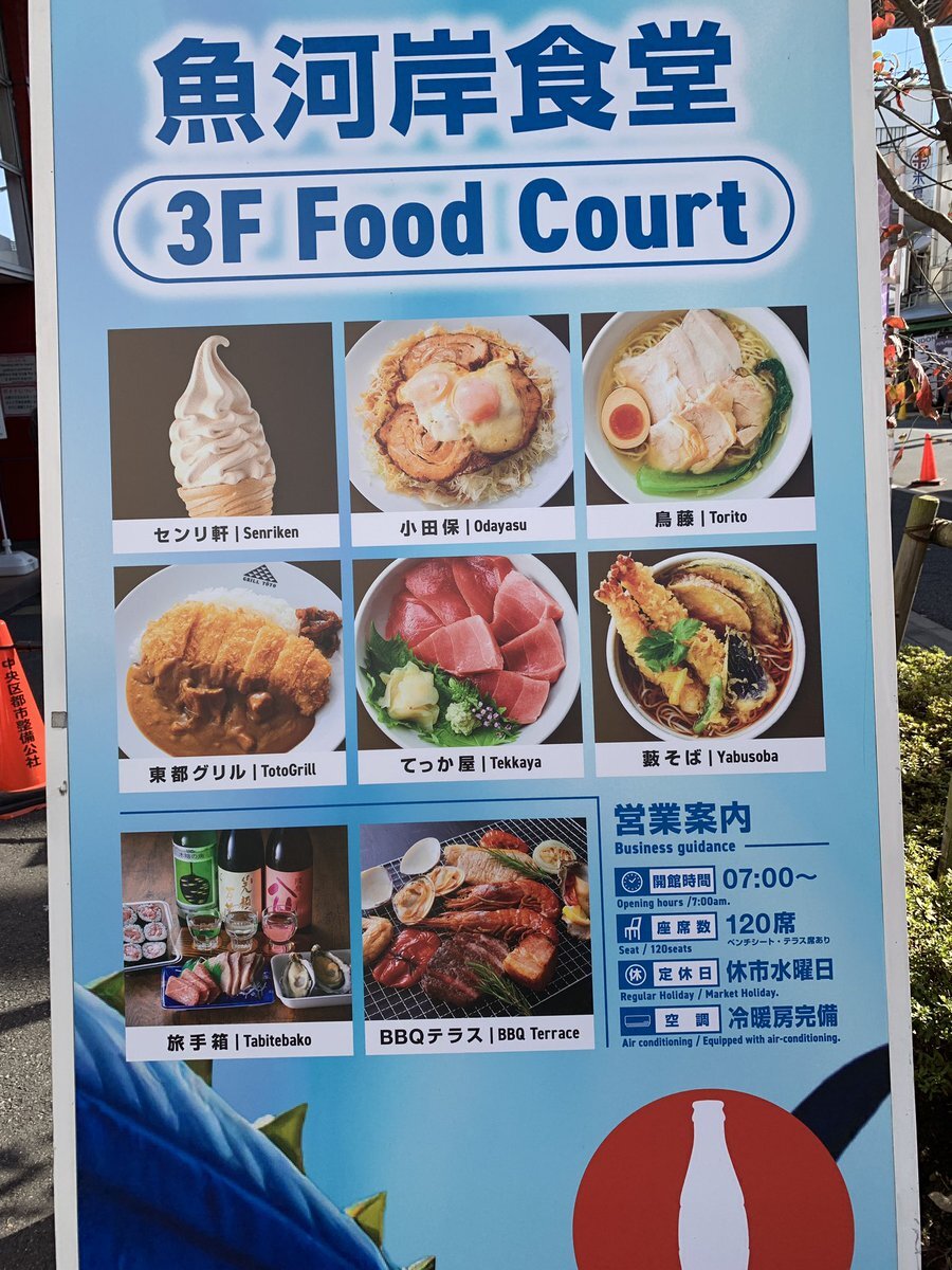 🍣築地魚河岸3F「魚河岸食堂」🐟 市場の活気をそのままに❗️ 人気店の海鮮丼、定食、洋食、そばなどをフードコート形式で楽しめる✨ 開放的な屋上テラス席もあって、休憩にも食事にもピッタリ!朝7時から営業してるお店も🌞 #築地 #築地魚河岸 #つきじgo