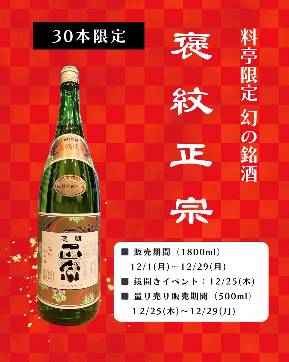 📣注文予約受付開始!📣 他では買えない幻の銘酒!『褒紋正宗』 この価格で買えるのは限定30本となります!この機会に是非お買い求めください✨ (※ 12/1以降の配送となります) 【注文予約はコチラ】tabitebako.com/products/homon… #白鷹 #築地