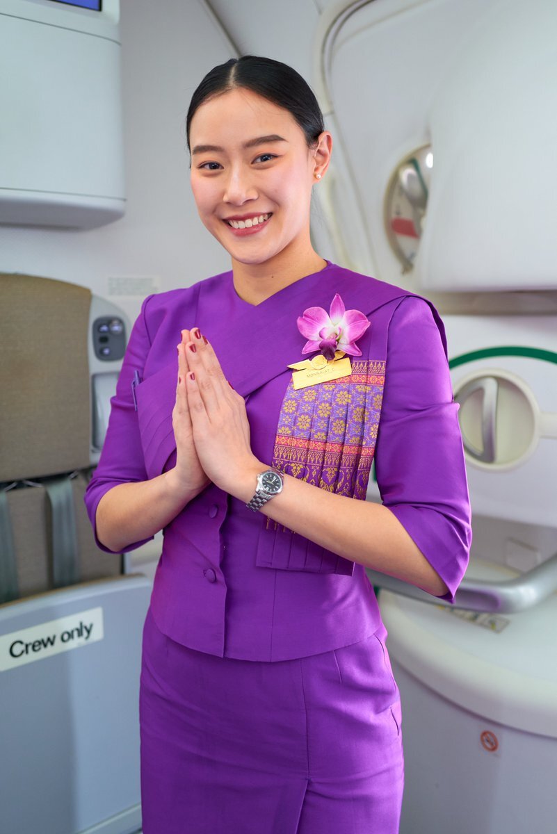 タイ国際航空では、タイの伝統的なあいさつ、両手を合わせる「ワイ」で皆さまをお迎えします🙏✨ この仕草には、相手への敬意と温かい気持ちが込められています。 次のフライトで、ぜひタイならではのおもてなしを体験してください💜