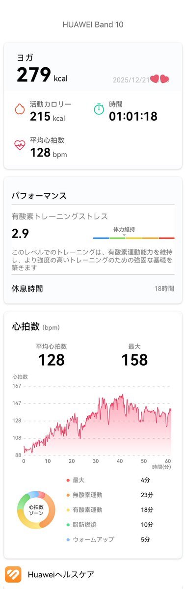 2025/12/21 Wt.+4.8kg #ジョイフルヨガ 🐒 #ホットヨガLAVA 279kcal🌳 #Huawei #Band10 MAX 158bpm AVE.128bpm C待がほぼ出ない店舗でも昨日今日はC待 この🐒も余裕でいたらお昼にC待になって焦った💦 結果27人約75%で快適空間☺️ 左膝イマイチだし全身バラバラながら頑張った #ホットヨガ #lava #ヨガ pic.x.com/CHjdkK7RFY