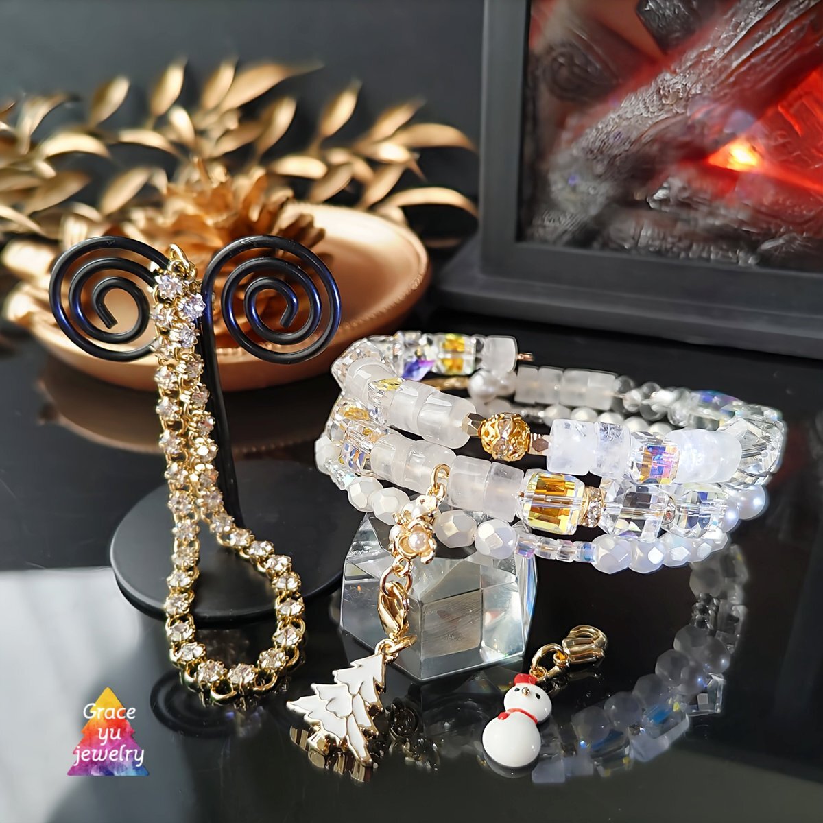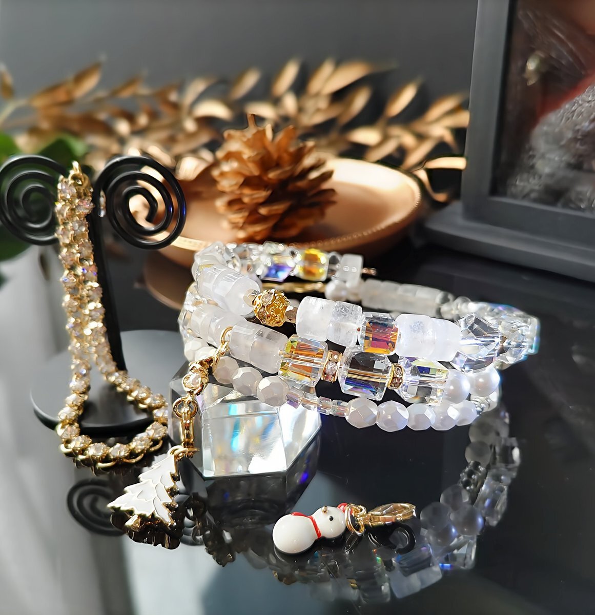 ■snow white 天然石ムーンストーンコイルブレスレット完成。 可愛い樽型のムーンストーンです。 ラインストーンのブレスレット ホワイトクリスマスツリー 雪だるまのチャーム付き。 minne.com/yukyokyo 今週出品予定です。 #天然石 #minne #ミンネ #handmade #handmadejewelry pic.x.com/FU3rKr5wp1