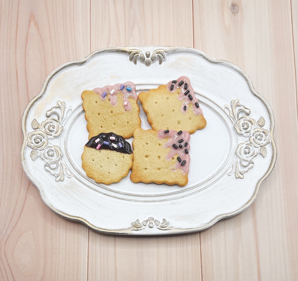 本日もクッキー量産中です✨ カラースプレーの色や配置、バランスが難しいですね…🤔 #就労継続支援 #B型事業所 #札幌 #handmade #ハンドメイド #ハンドメイドアクセサリー #ミニチュアスイーツ pic.x.com/yTNMGBNhQW