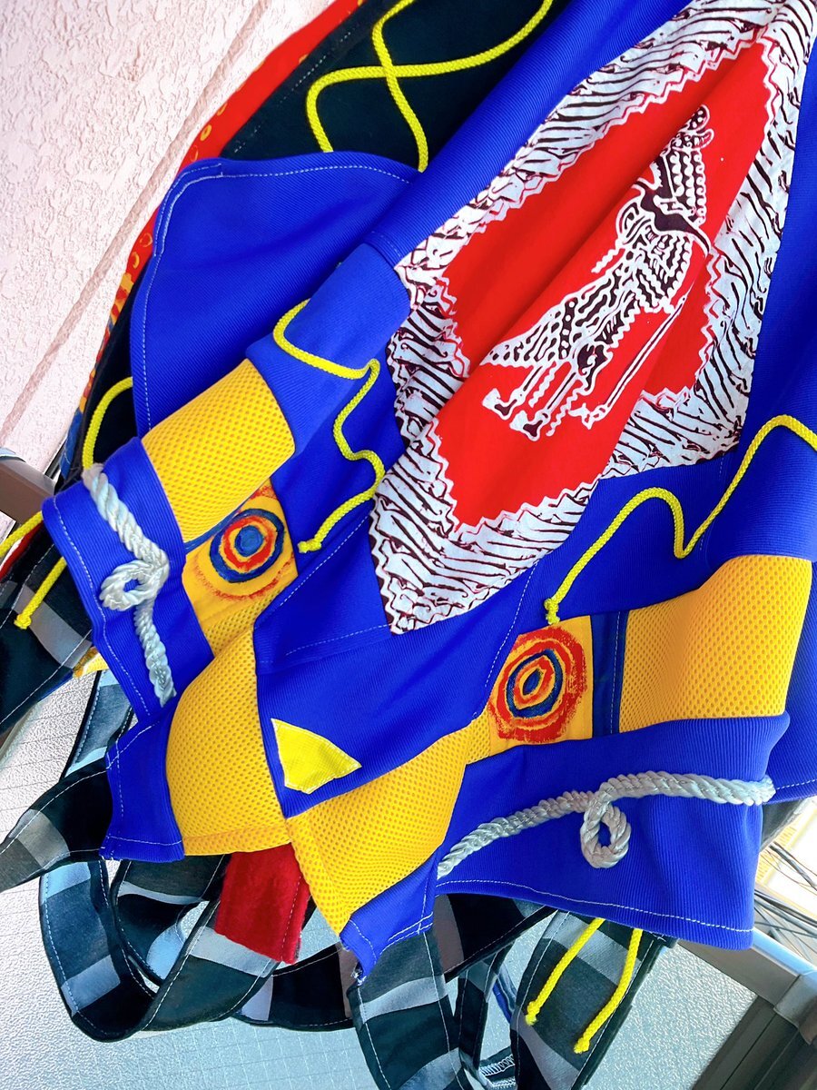 【ネコ科ットソー】 以前制作した【ネコ科の脳裏変形トップス】をサイズ🆙してボリューム🆙‼️ 追加ペイントして目力マシマシ👁️🗨️😾👁️🗨️ 首回りにも遊びをいれて🪢 黄色い紐のアクセント🟡 獲物を探して舌ペロ中...😛 迫力マシマシ野生的に無事進化💙💪❤️🔥🖤 #handmade pic.x.com/1MNNPQE382
